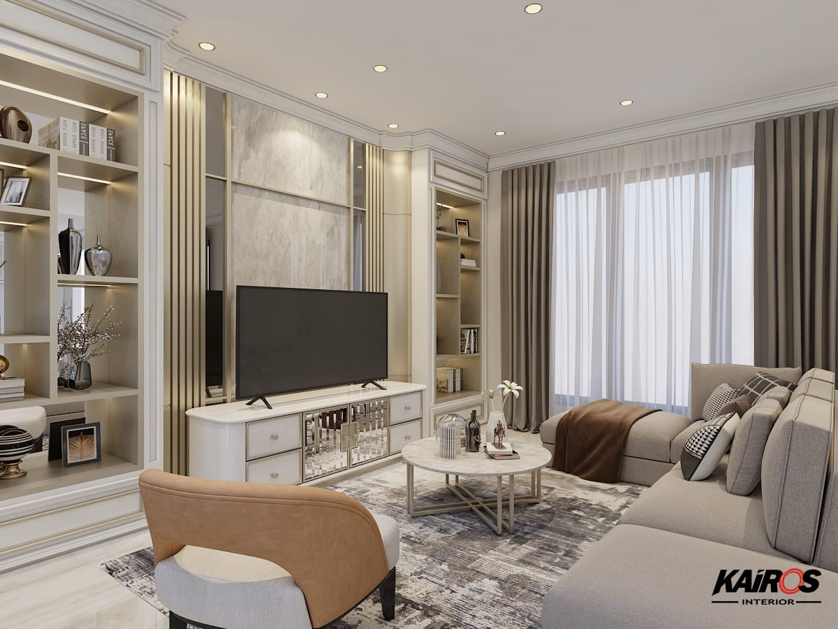 Penggunaan Chandelier memberikan kesan mewah dan elegan sehingga memberikan tampilan interior classic modern berkelas.